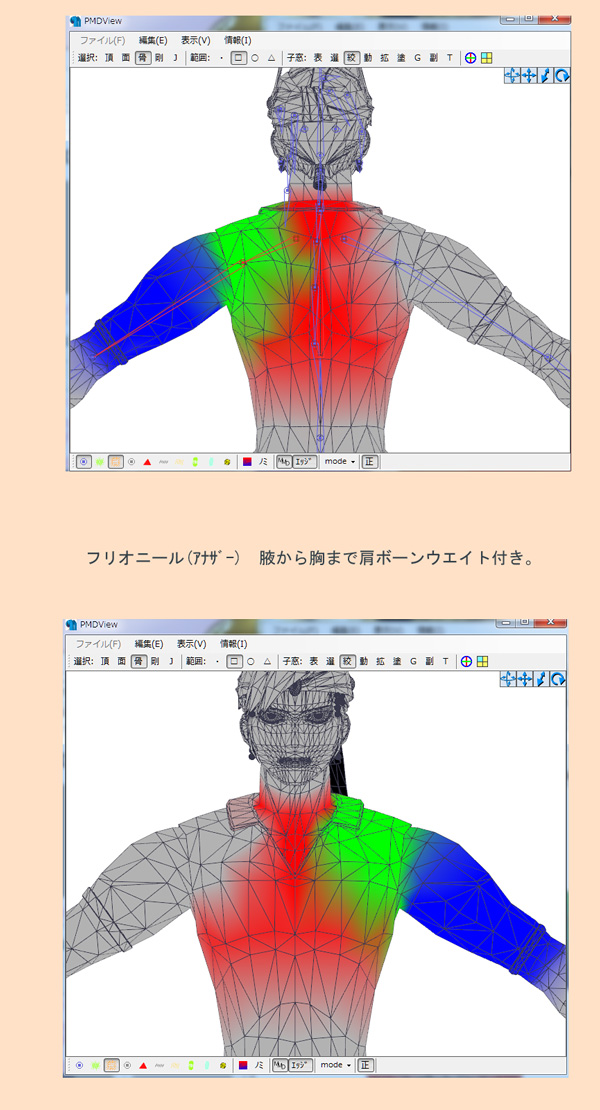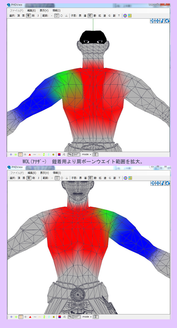 モデリングを勉強しはじめて約1年で改造モデル含めて8体ほど作りましたが、肩周り・股間付近の鬼門っぷりは依然変わらずで上達しない(´・ω・`)